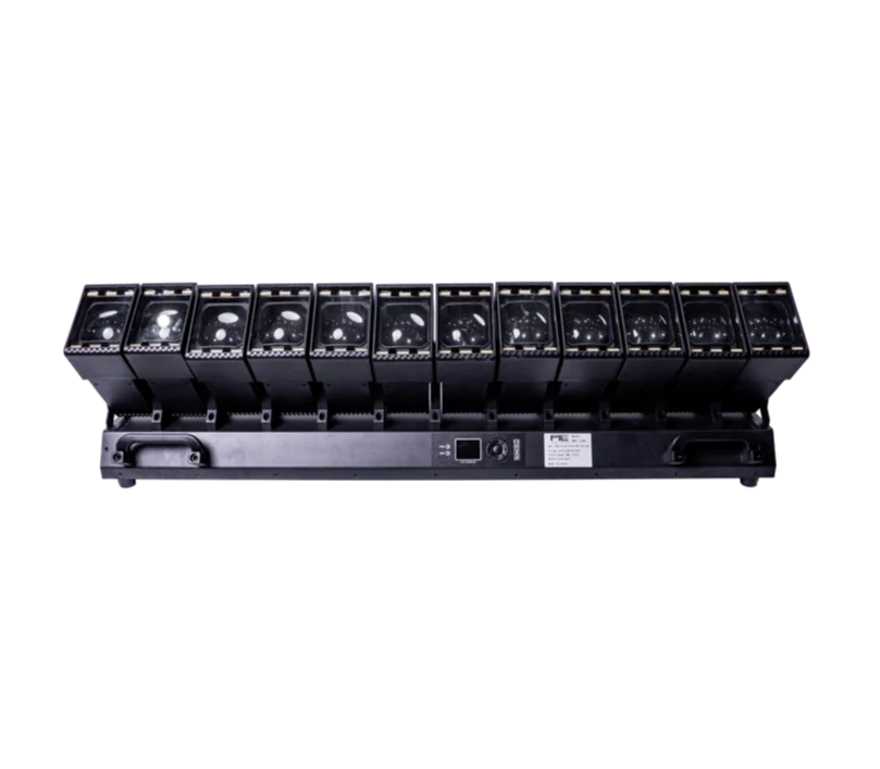 | Otros detalles | Atenuación lineal de 32 bits 0–100%, frecuencia estroboscópica 1–30 Hz, oscilador LED único + linterna + haz, cuerpo metálico negro, entrada/salida DMX512 y de alimentación, temperatura de funcionamiento -30°C a 50°C, IP20, dimensiones: 100,7 × 23,1 × 30 cm |
